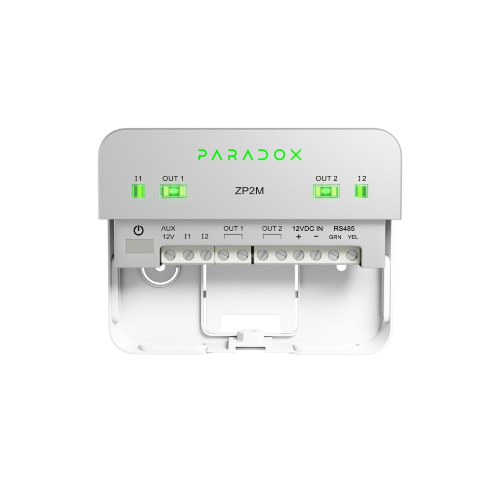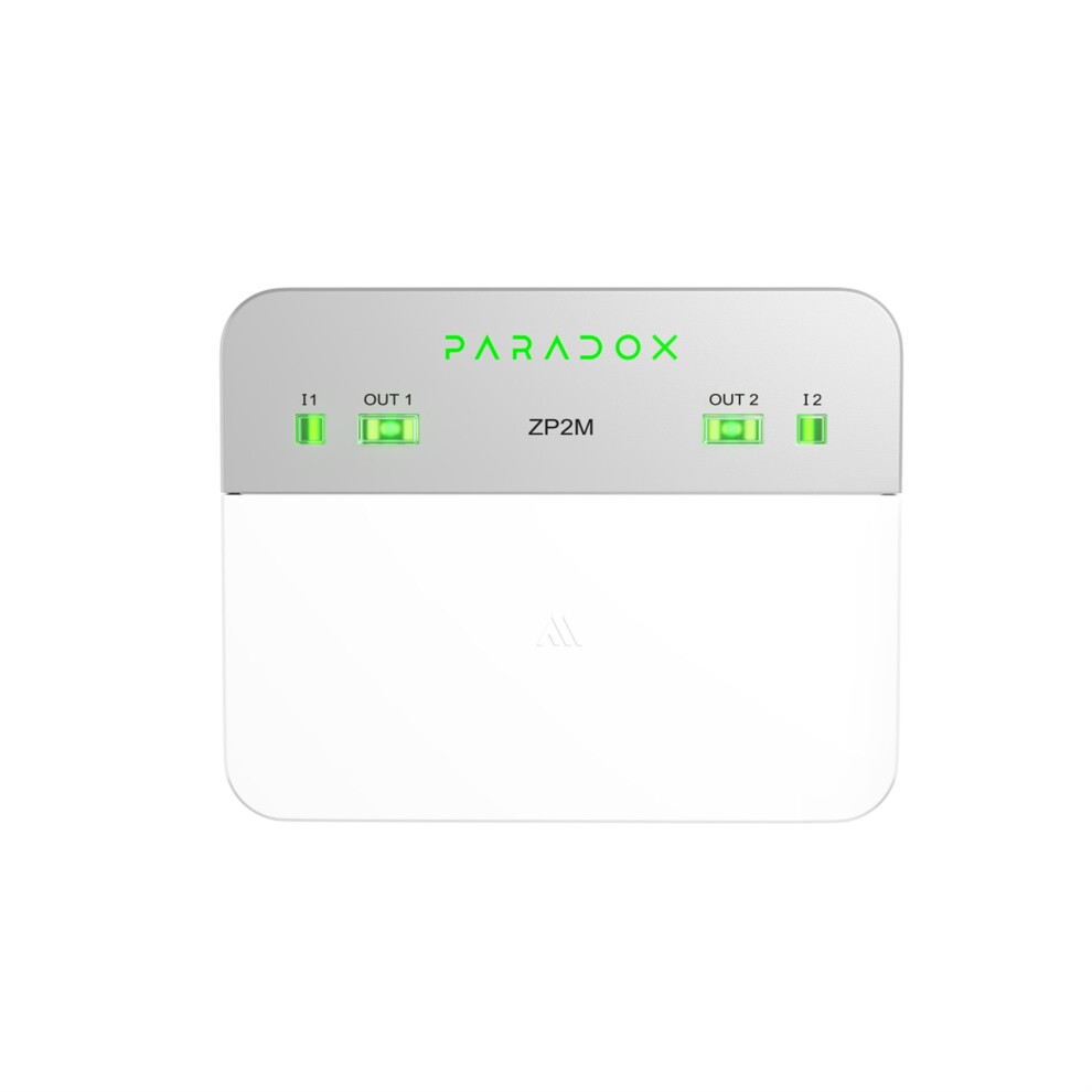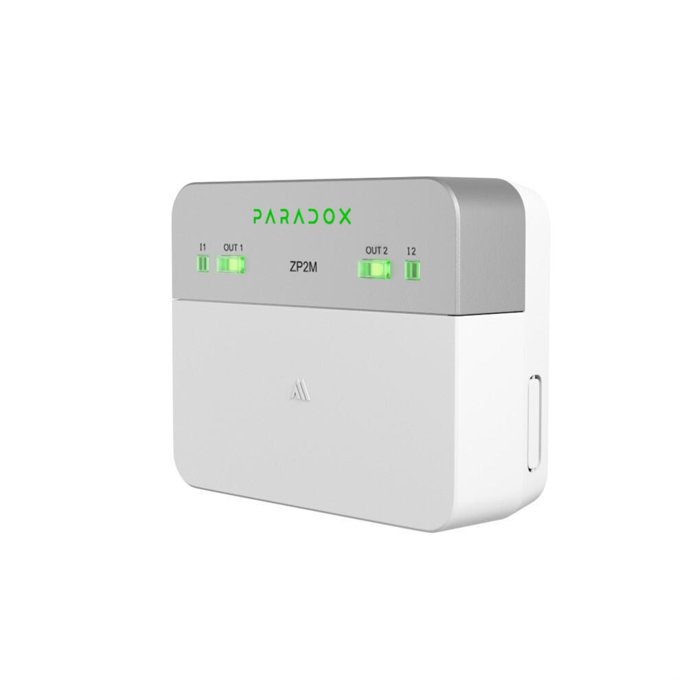 ZP2M это модуль расширения в системе M с двумя зонными входами и двумя релейными выходами. Он может быть подключен к консоли M25 через шину M RS-485, беспроводную связь или оба варианта одновременно для обеспечения устойчивой работы. Он поддерживает беспроводную связь с использованием новейшей технологии гауссовой частотной модуляции (GFSK) с переключением частоты и шифрованием. ZP2M может использоваться как универсальный расширитель с двумя входами и двумя выходами Два входа представляют собой полнофункциональные охранные зоны с опциями оконечного резистора. Два релейных выхода можно запрограммировать как нормально замкнутые (НЗ) или нормально разомкнутые (НО).